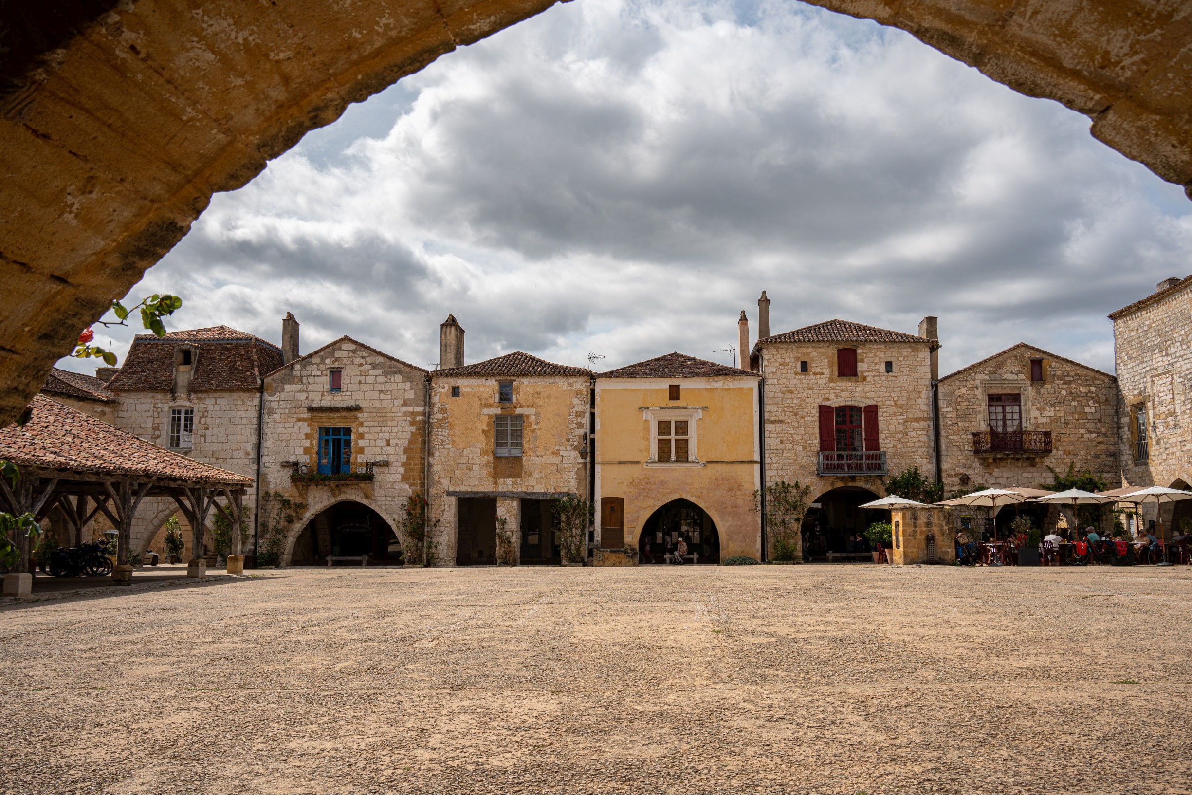 Dieses Foto verwirklicht gleich mehrere Tipps dieses Tutorials. Durch den Torbogen entsteht ein Rahmen ("Framing"). Durch den weiten Vordergrund und den bewölkten Himmel entsteht Ruhe. Und Passanten sind in diesem Moment nicht im Bild und können daher den Blick auch nicht ablenken.