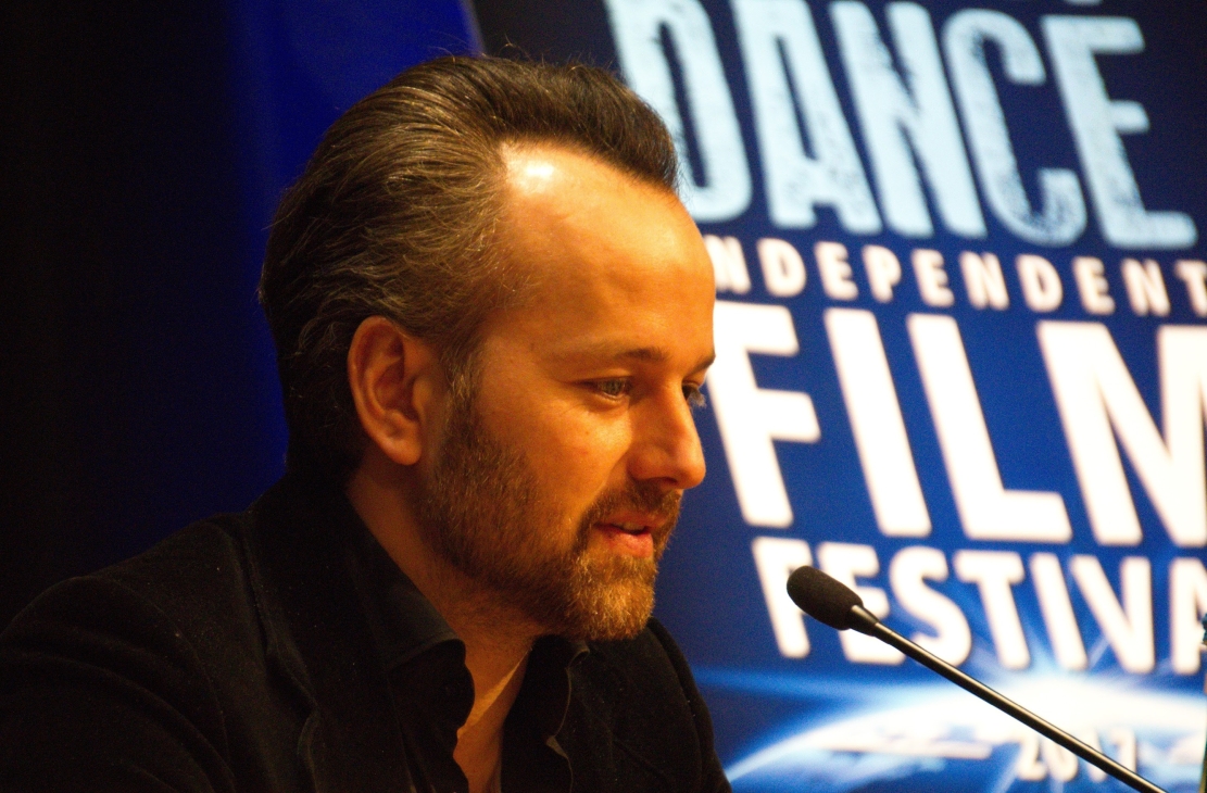 Hier ging es während einer Podiumsdiskussion darum, sowohl die Schrift im Hintergrund wie auch den Redner ins Bild bekommen. Die Kunst liegt hier also in der Bildung des richigen Ausschnitts. Auf durchgängige Schärfe wurde kein Wert gelegt, dafür war die Blendenöffnung zu groß (was angesichts der Lichtverhältnisse notwendig war).