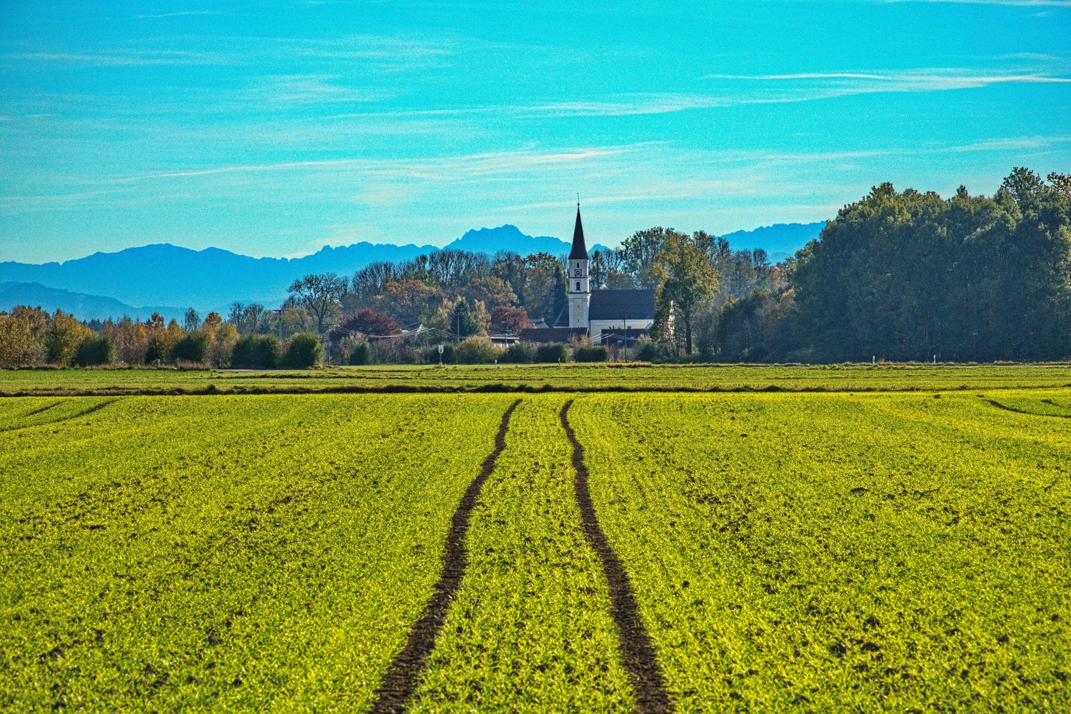 Davon zu trennen sind blickführende Linien, also solche, die den Blick des Betrachters auf etwas lenken, zum Beispiel auf eine Kirche ...